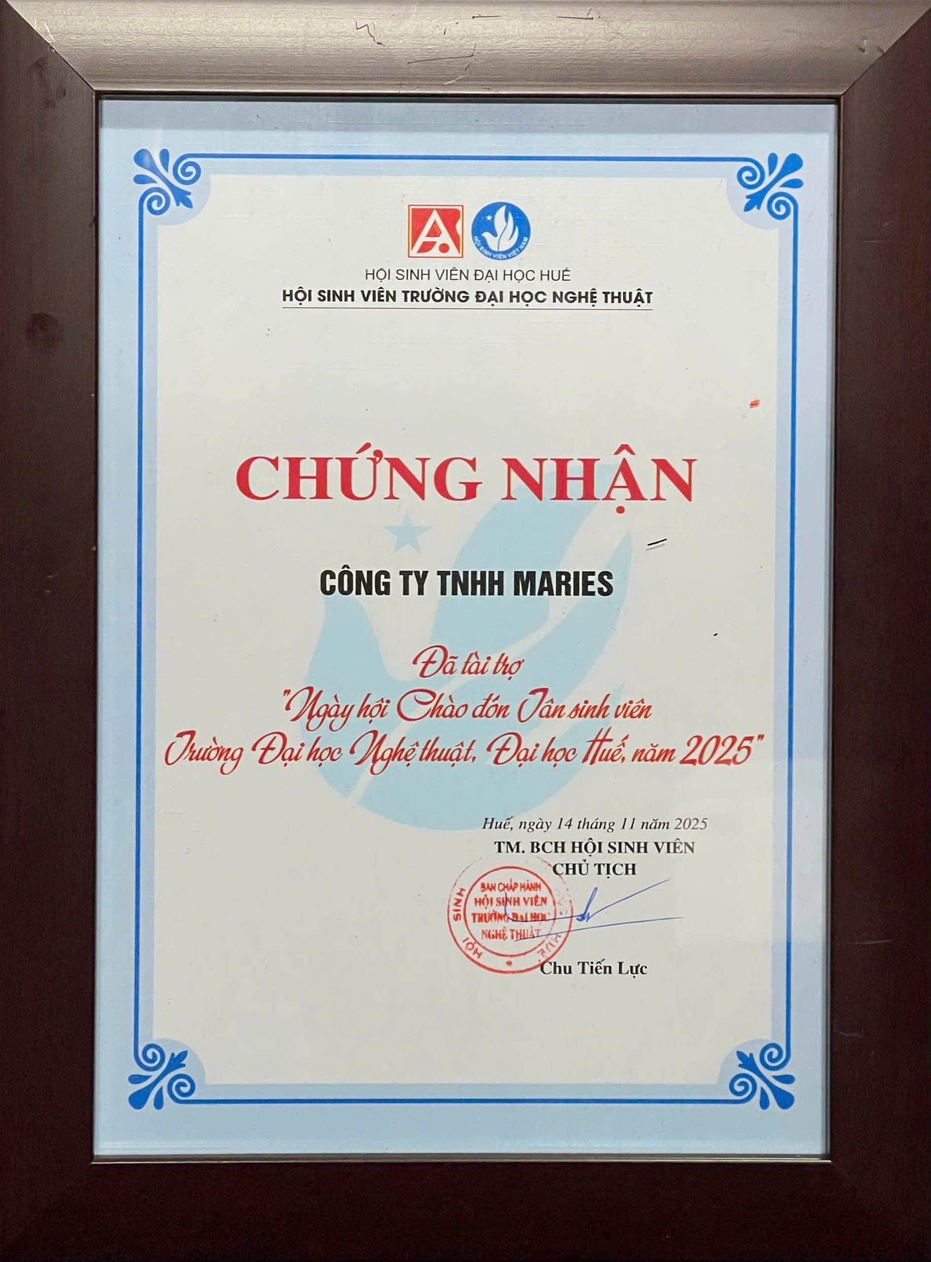 Maries tự hào khi được đồng hành cùng Nhà Trường trong hành trình bồi dưỡng những mầm xanh ấy. Và chúng tôi sẽ tiếp tục tìm cách hỗ trợ thiết thực hơn, từ học bổng, cơ hội thực tập đến mở rộng dự án cộng đồng dành cho khối ngành nghệ thuật.