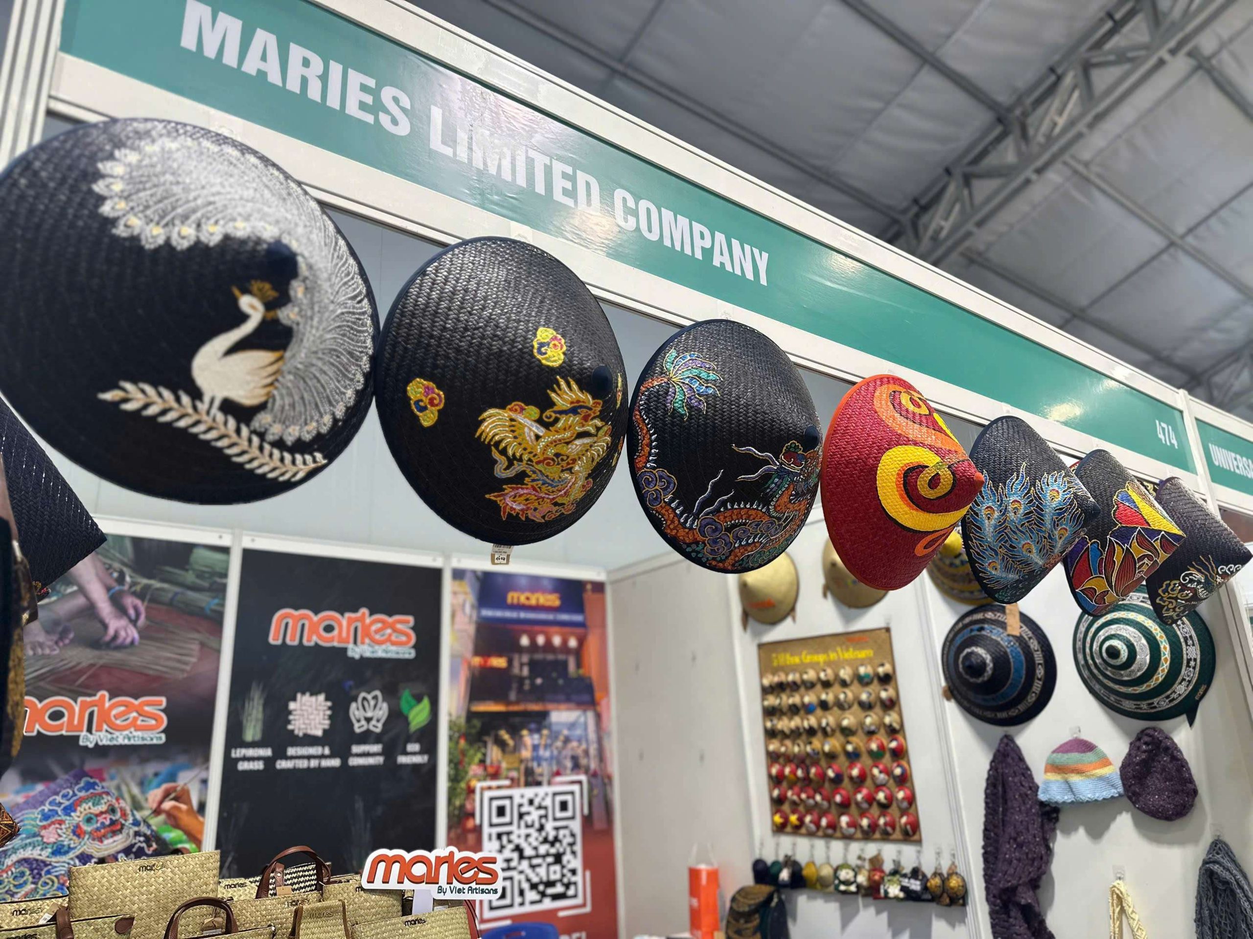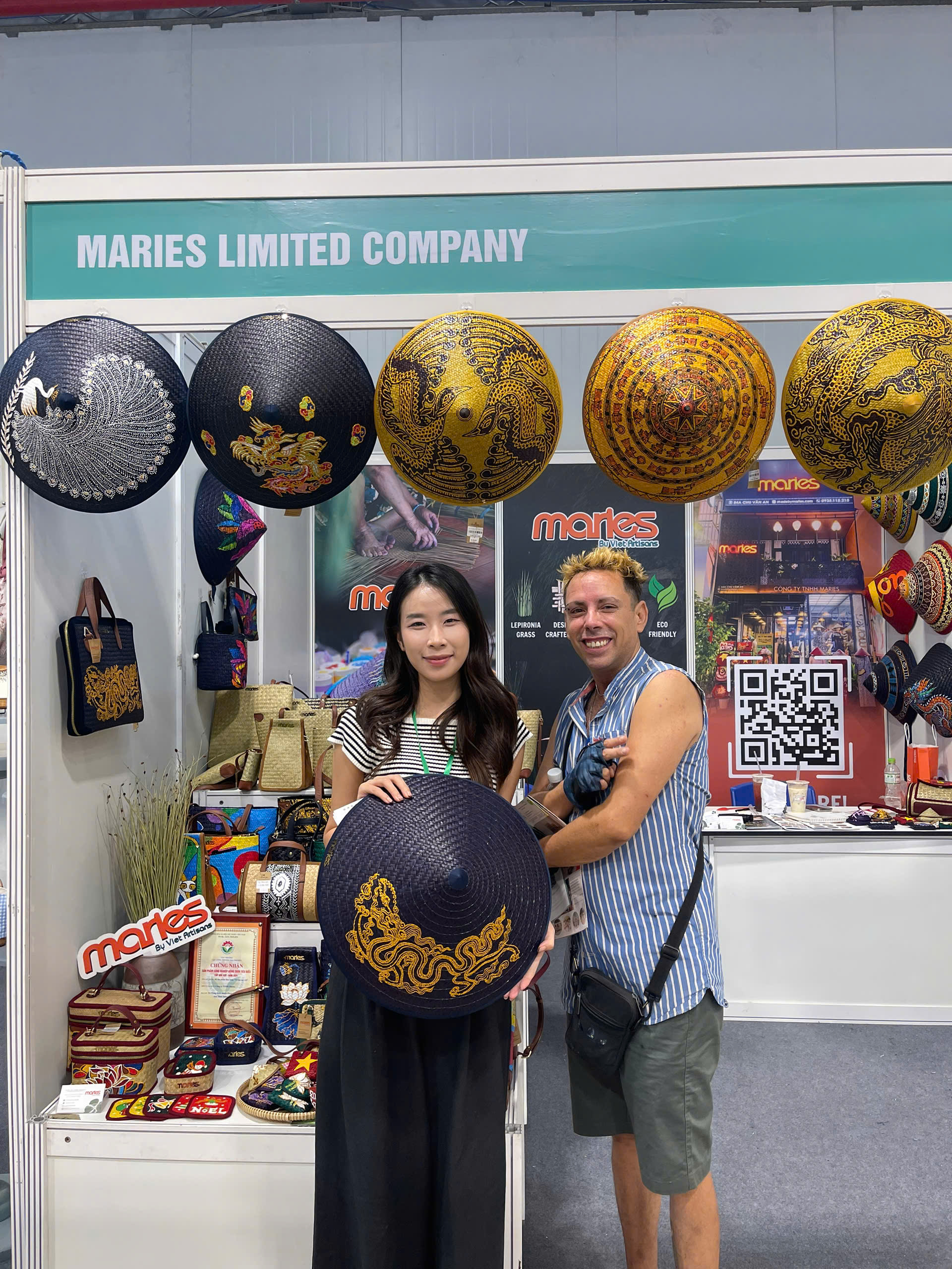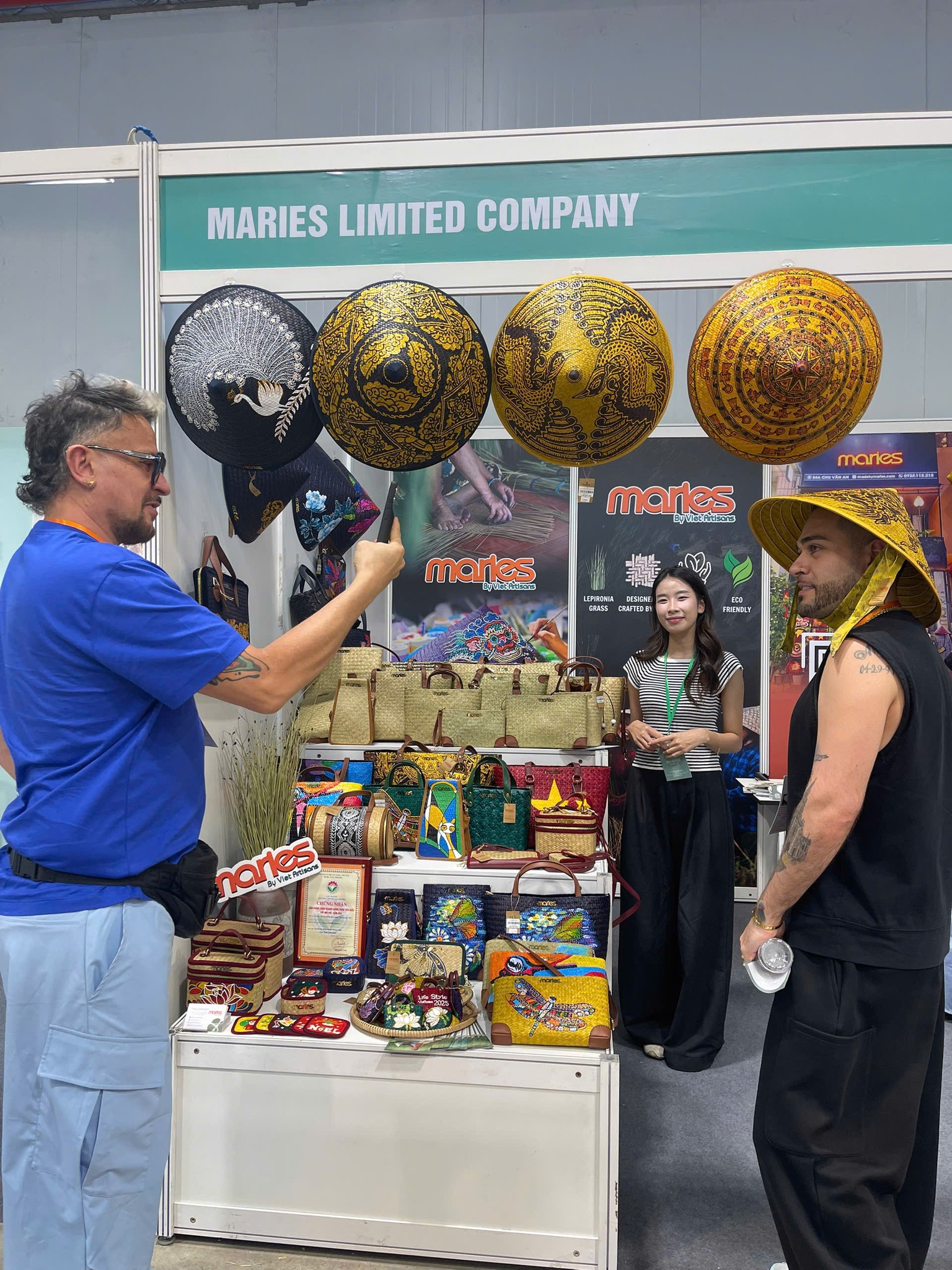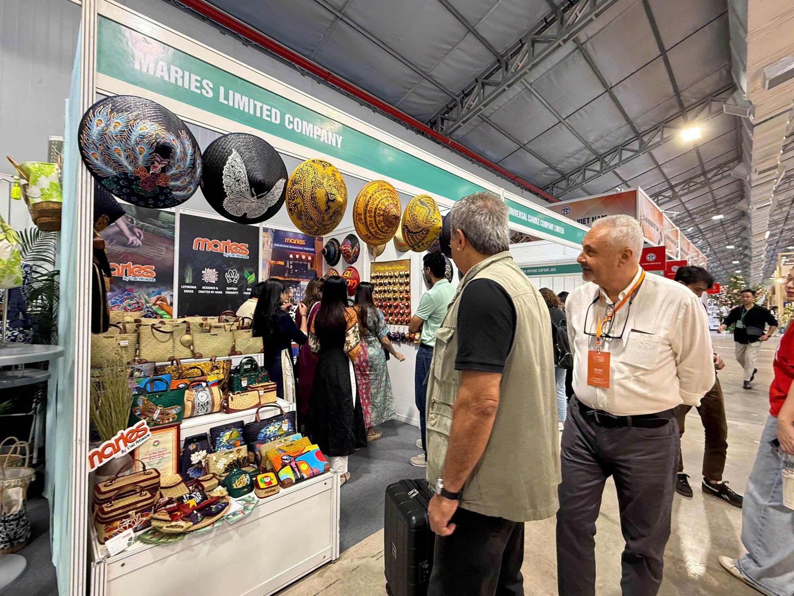 Maries’ signature creations — including bags, hats, wallets, and charms made from natural Lepironia grass — were highly praised for their elegant design, functionality, and strong cultural storytelling. Many international buyers registered for catalogs, wholesale policies, and sample collaborations, reflecting growing interest in Vietnamese handcrafted goods.