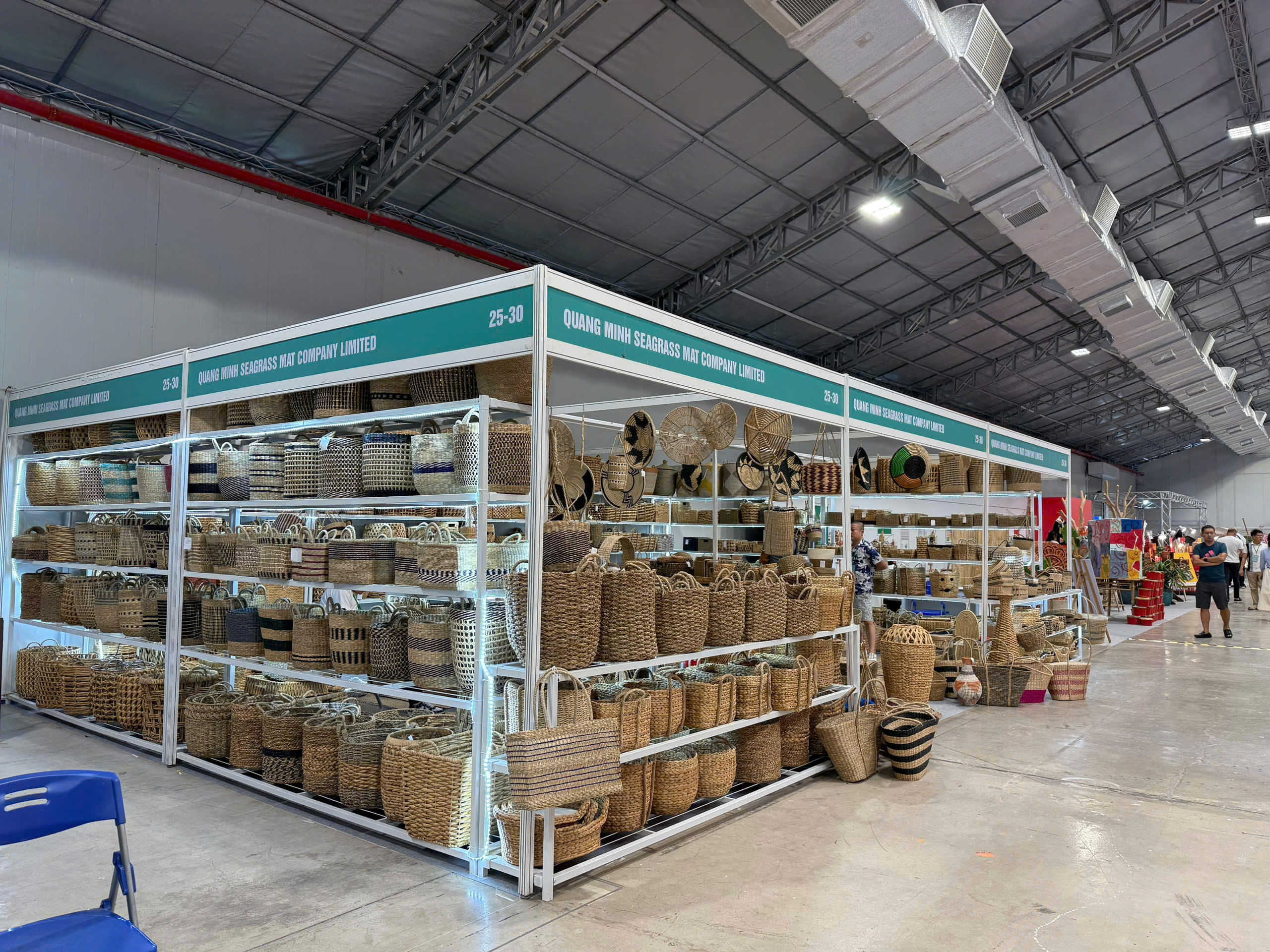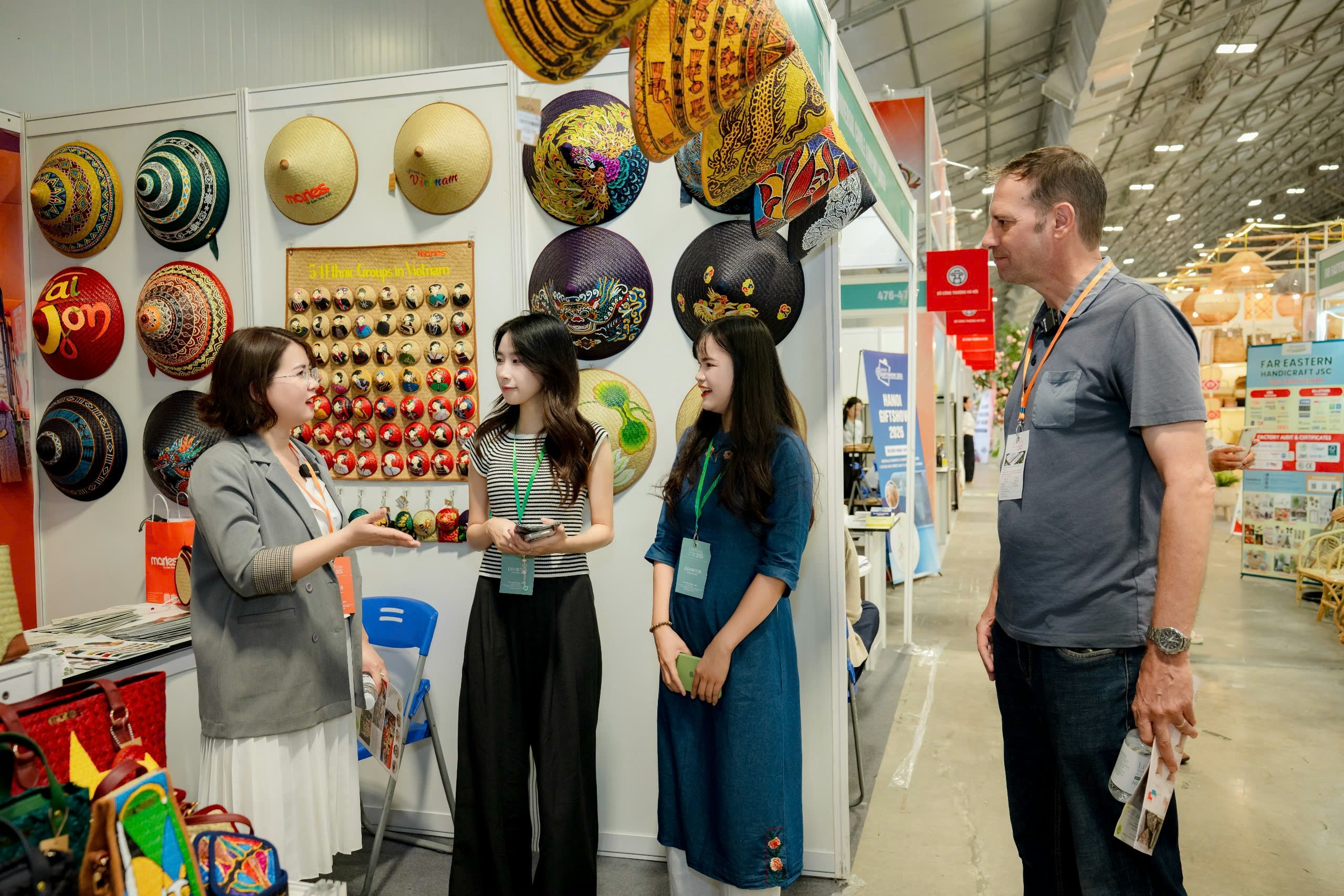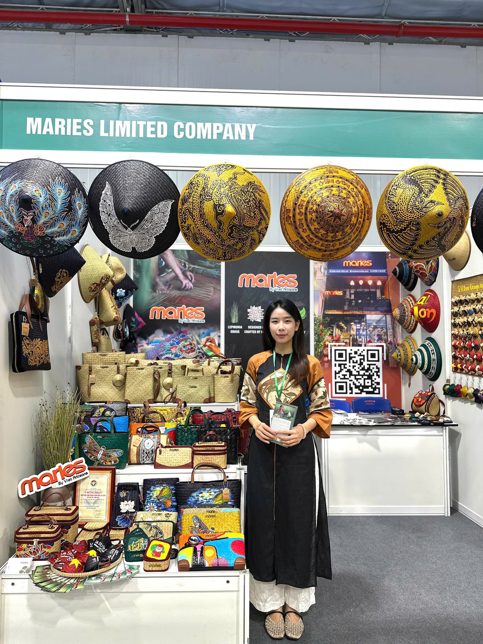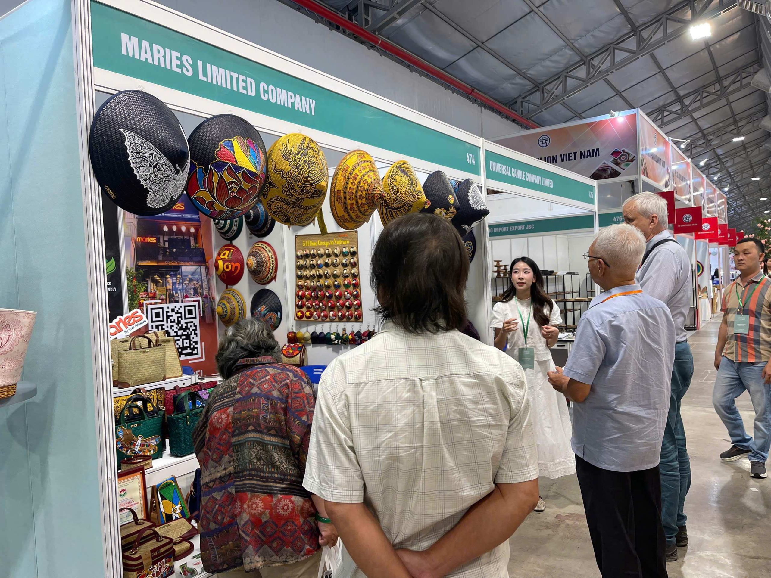 Maries’ signature creations — including bags, hats, wallets, and charms made from natural Lepironia grass — were highly praised for their elegant design, functionality, and strong cultural storytelling. Many international buyers registered for catalogs, wholesale policies, and sample collaborations, reflecting growing interest in Vietnamese handcrafted goods.