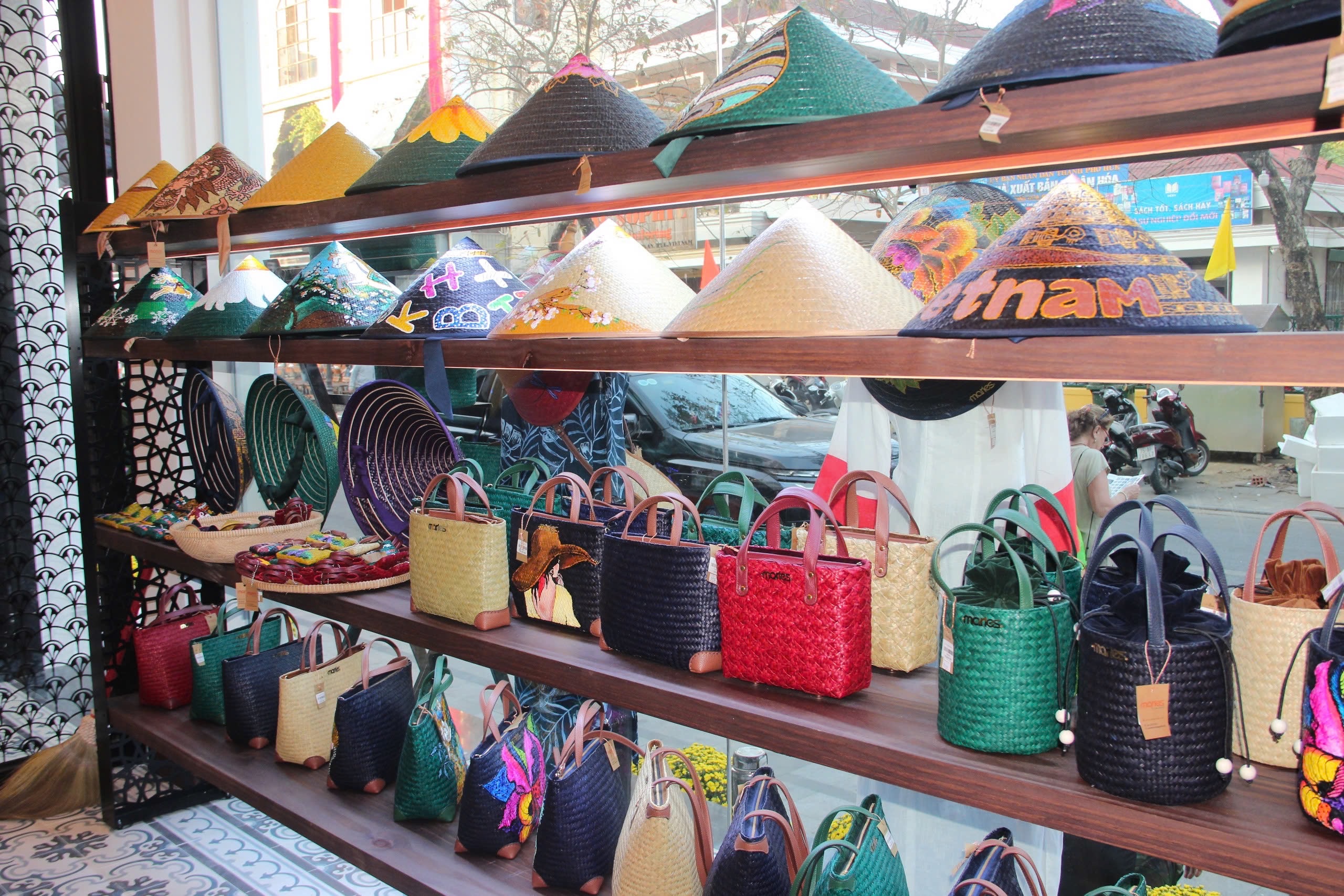 Từng chiếc túi Cỏ Bàng, từng món quà tặng thủ công mỹ nghệ mang họa tiết văn hóa Huế được đặt trong không gian mới như một lời khẳng định: truyền thống có thể song hành cùng hiện đại.