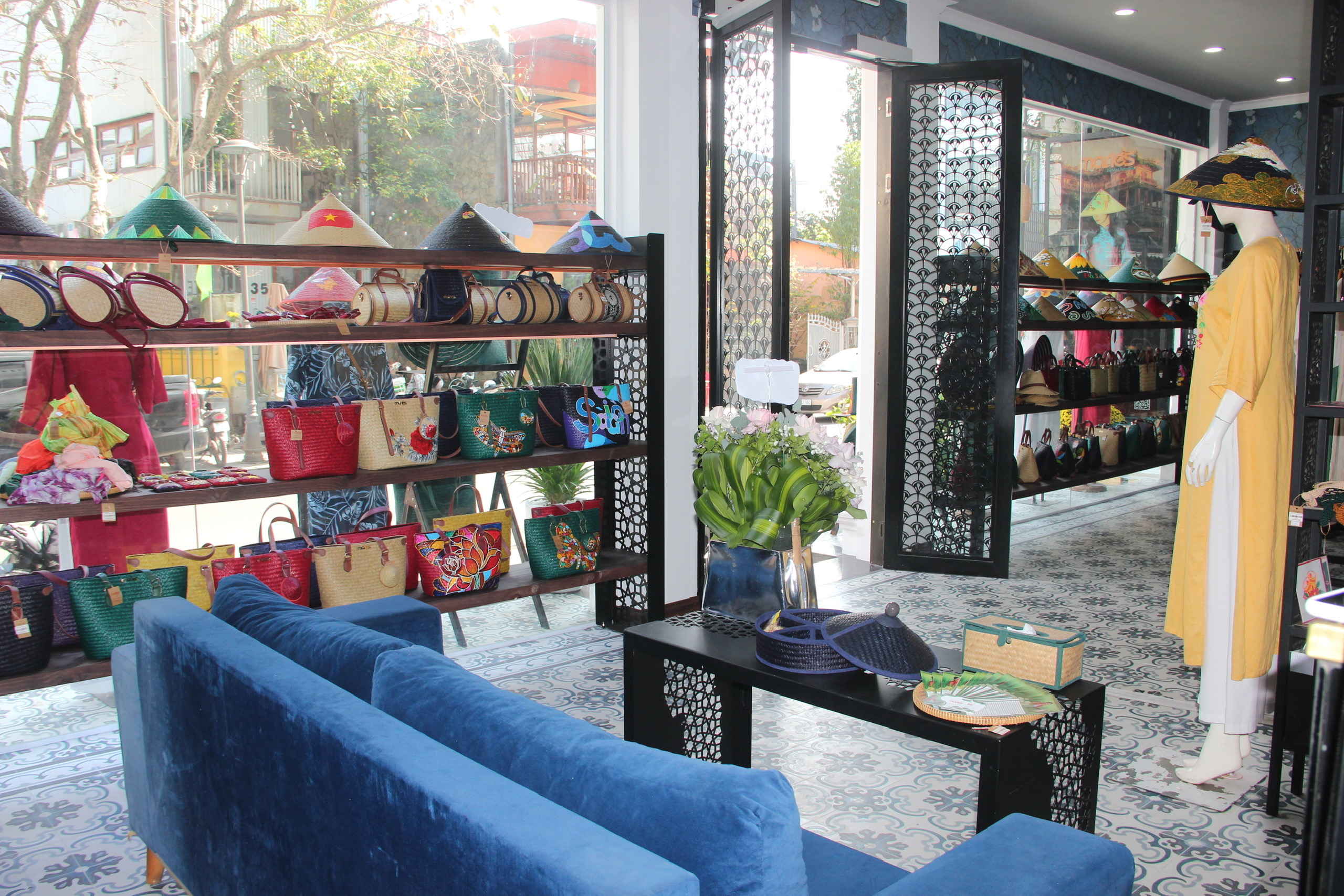 Showroom trước đây của Maries từng là điểm dừng chân quen thuộc của du khách yêu thích đồ handmade, yêu những giá trị truyền thống và tìm kiếm quà tặng thủ công mỹ nghệ mang dấu ấn Huế. Không gian ấy ấm cúng, gần gũi – nơi những chiếc túi xách thủ công, nón, ví từ Cỏ Bàng lần đầu được giới thiệu một cách chỉn chu.