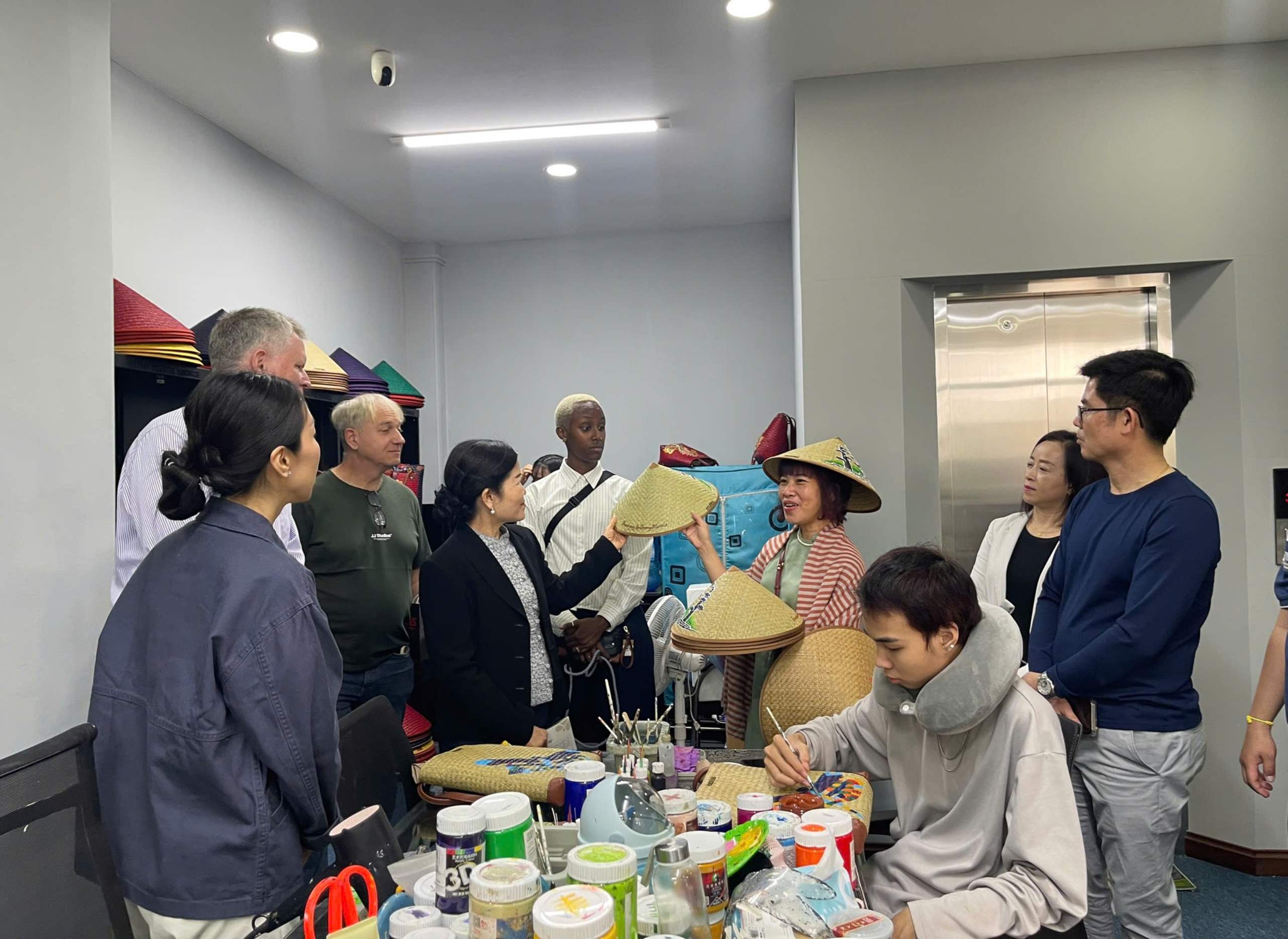 Chuyến thăm Maries nằm trong chuỗi hoạt động thực tế nhằm khảo sát các mô hình kinh tế địa phương gắn với phát triển bền vững, đặc biệt là những sáng kiến tạo sinh kế cho cộng đồng và thúc đẩy kinh tế xanh. Việc một đoàn công tác cấp cao lựa chọn doanh nghiệp thủ công mỹ nghệ tại Huế làm điểm đến đã thể hiện sự quan tâm rõ rệt đến vai trò của thủ công mỹ nghệ Việt Nam trong chiến lược phát triển dài hạn và hợp tác quốc tế.Tại “Ngôi Nhà Thủ Công – Maries Craft House” ở 46 Chu Văn An, đoàn đã trực tiếp tham quan không gian sản xuất, khu sáng tác của họa sĩ và khu trưng bày sản phẩm. Những chiếc túi, nón, ví và phụ kiện được đan thủ công từ sợi Cỏ Bàng xứ Huế không chỉ đơn thuần là sản phẩm tiêu dùng, mà còn là đại diện cho một mô hình phát triển dựa trên giá trị bản địa. Từng công đoạn – từ xử lý nguyên liệu, đan thủ công đến vẽ tay họa tiết – đều phản ánh sự kết hợp giữa kỹ thuật truyền thống và tư duy thiết kế hiện đại.