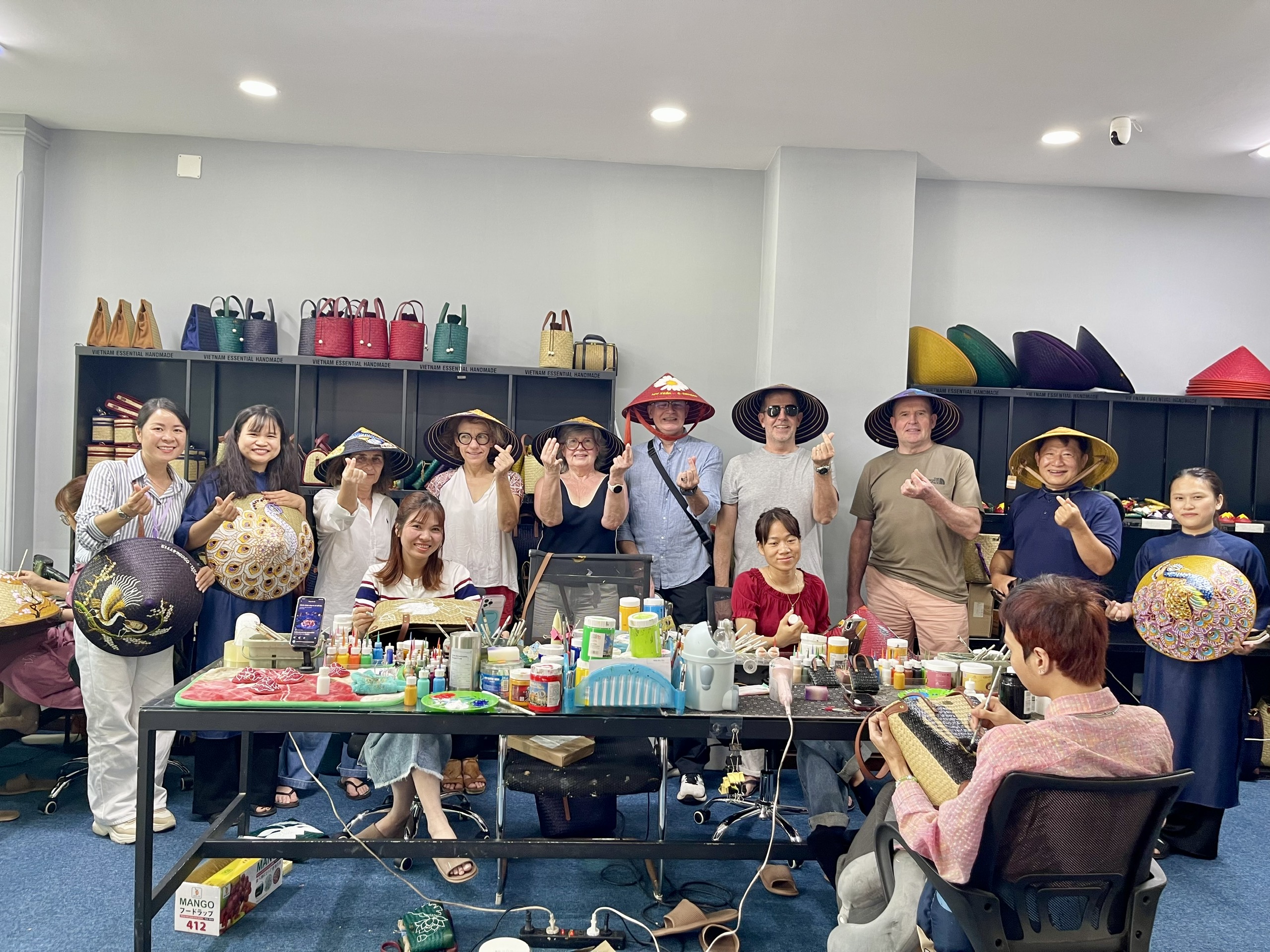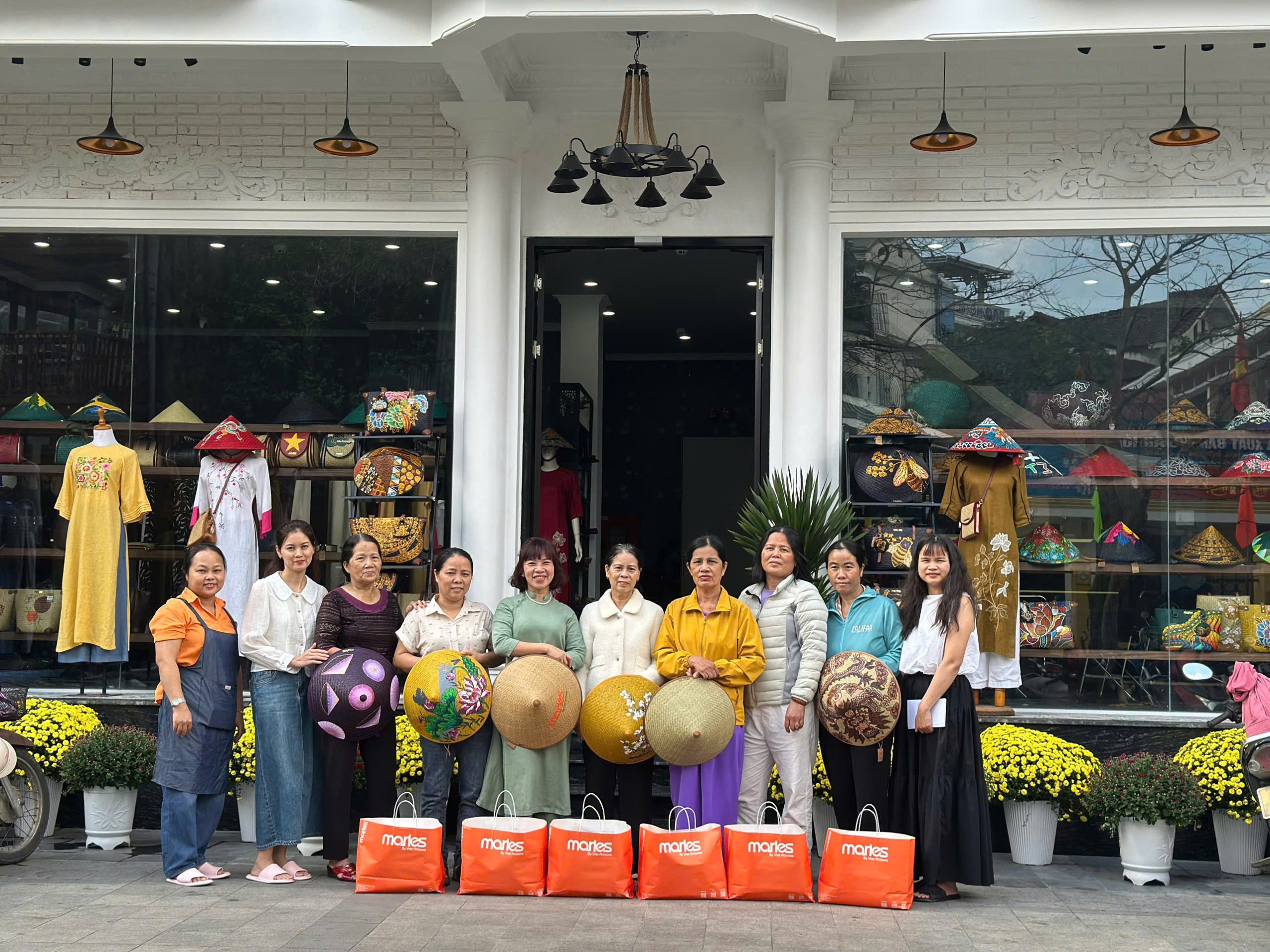 Tại buổi làm việc, đoàn đã trực tiếp tham quan quy trình sản xuất khép kín của Maries – từ nguyên liệu đến thành phẩm như nón Maries, túi cỏ bàng, phụ kiện thủ công. Những sản phẩm mang đậm dấu ấn Huế đã tạo ấn tượng mạnh với các đại biểu quốc tế.