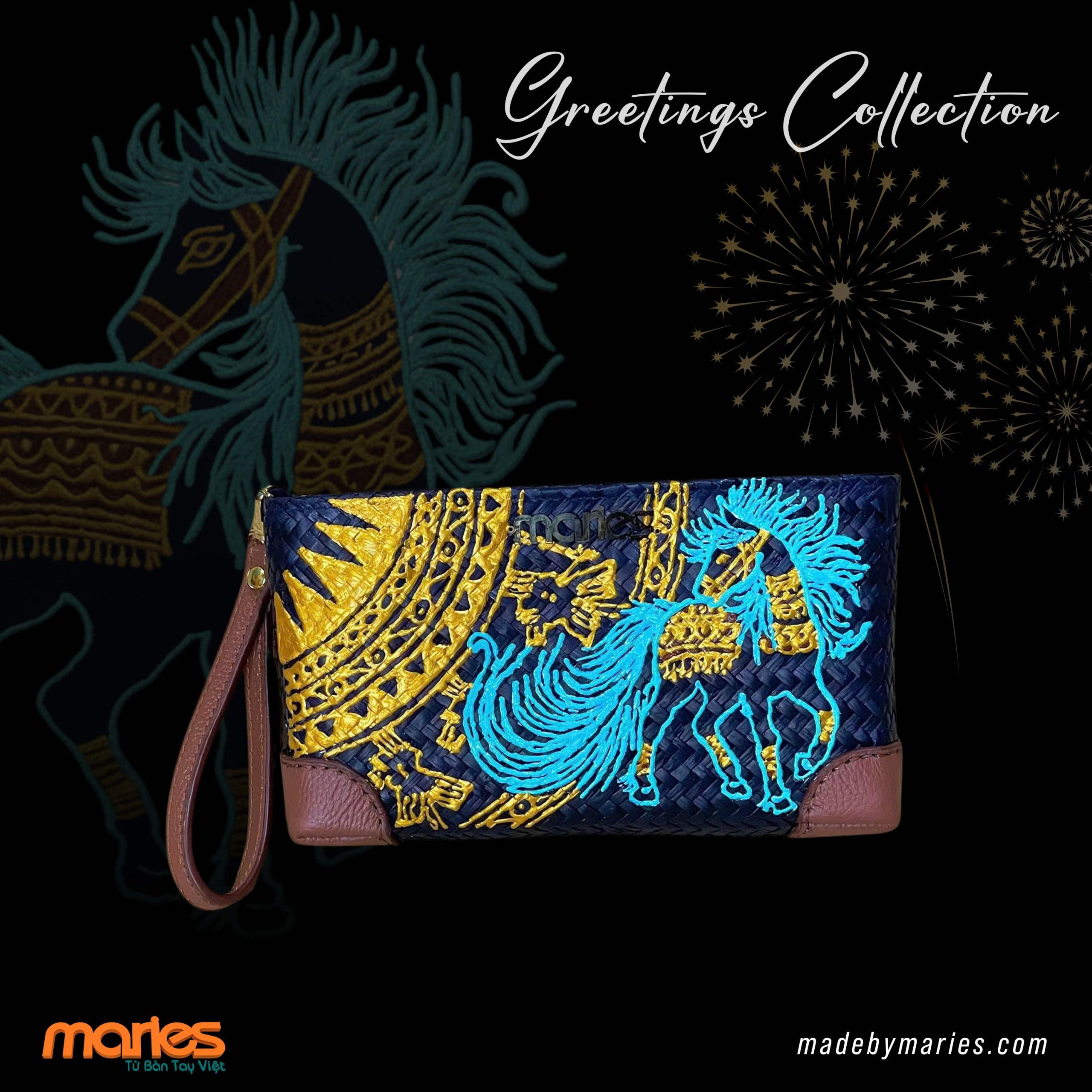Điểm nhấn của Greetings Collection nằm ở hình tượng Ngựa cách điệu kết hợp cùng họa tiết Trống Đồng.